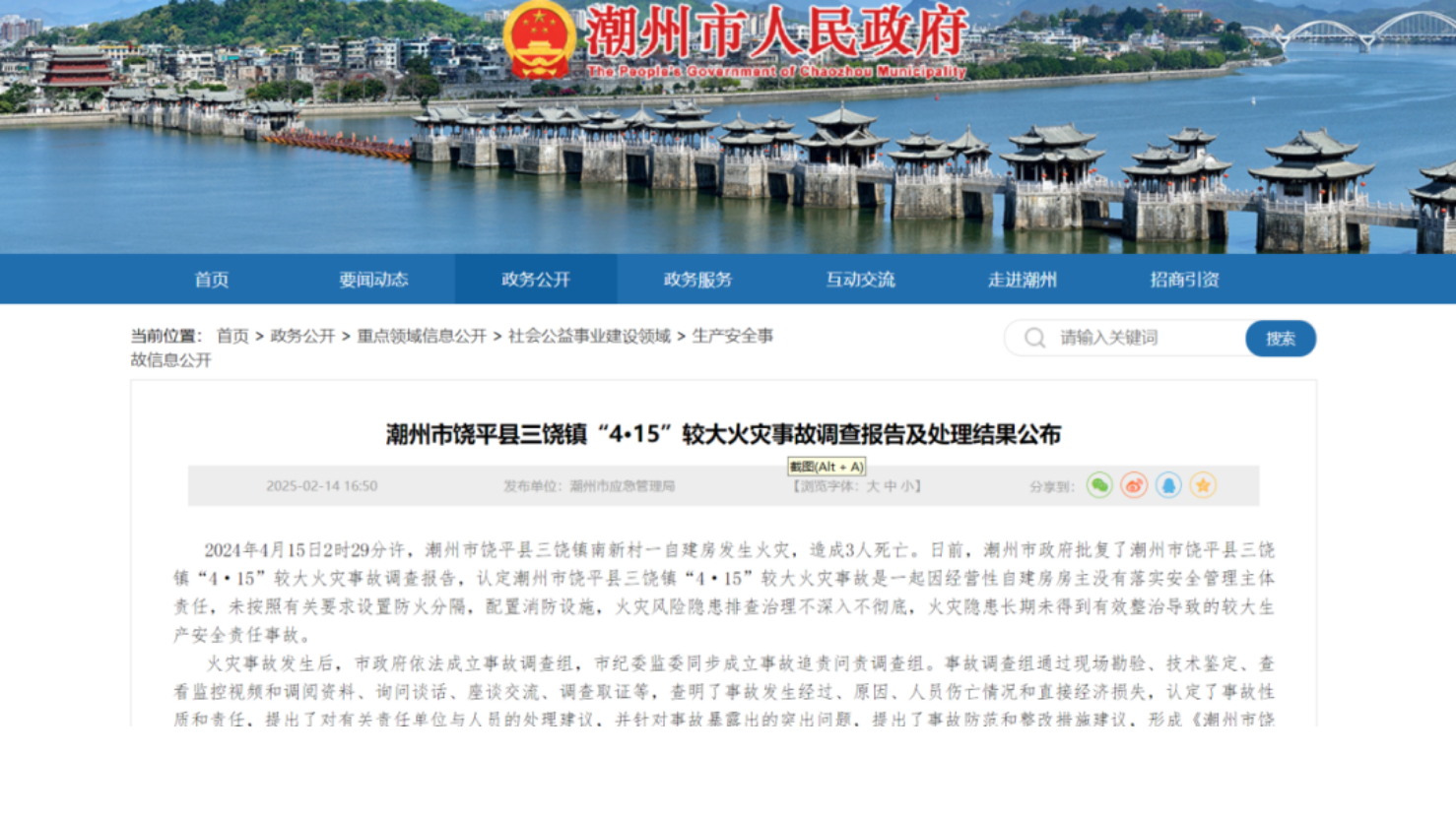 3人遇难!损失190万+!14名党员、公职人员予以问责→中国消防2025年02月19日 06:40北京近日潮州市政府批复了潮州市饶平县三饶镇“4·15”较大火灾事故调查报告事发经过2024年4月15日2时50分许,潮州市消防救援支队指挥中心接到报警:潮州市饶平县三饶镇一自建房起火。2时58分首战力量三饶镇专职消防队到达现场立...