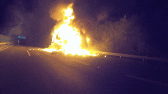 据江西景德镇消防消息近日,景德镇高速南收费站附近一辆货车于深夜突然起火消防接警后立即赶赴处置经现场勘察发现一辆满载物品的货车起火车辆尾部正在剧烈燃烧浓烟滚滚,火光冲天消防员立即对事发路段进行安全警戒同时出水枪堵截火势阻止蔓延明火被控制后救援人员又调派挖机转移货物经过两个半小时的奋战现场处置完毕事故造...